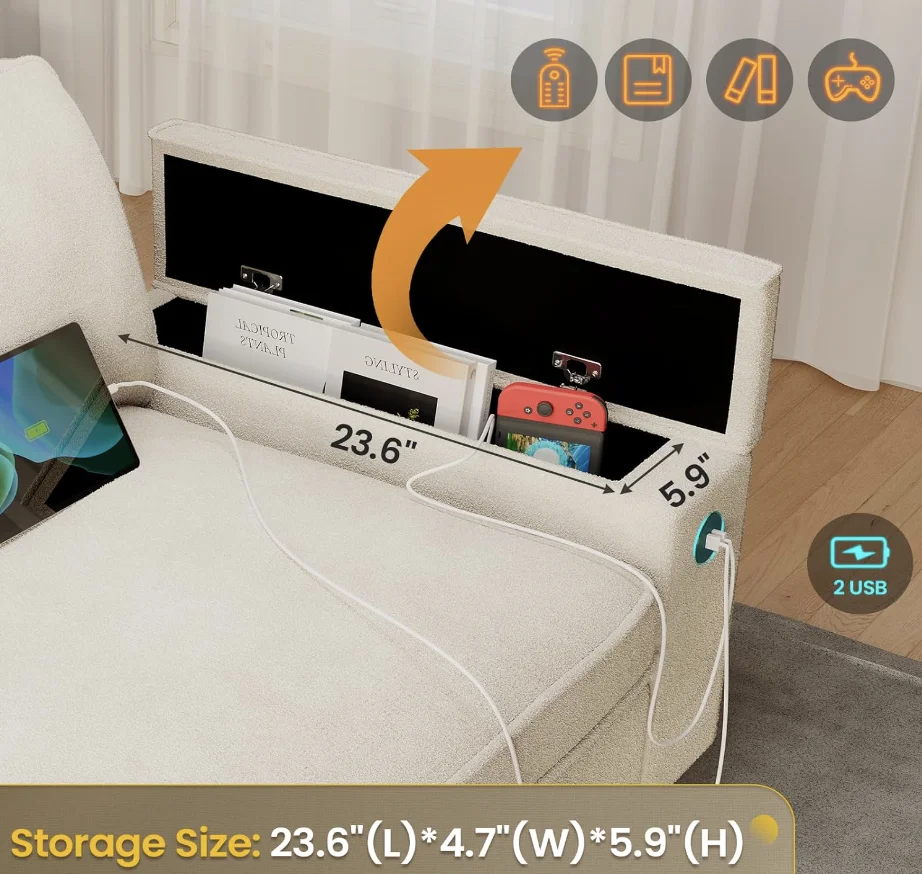 Oversized Loveseat w/storage 2USB Charging
